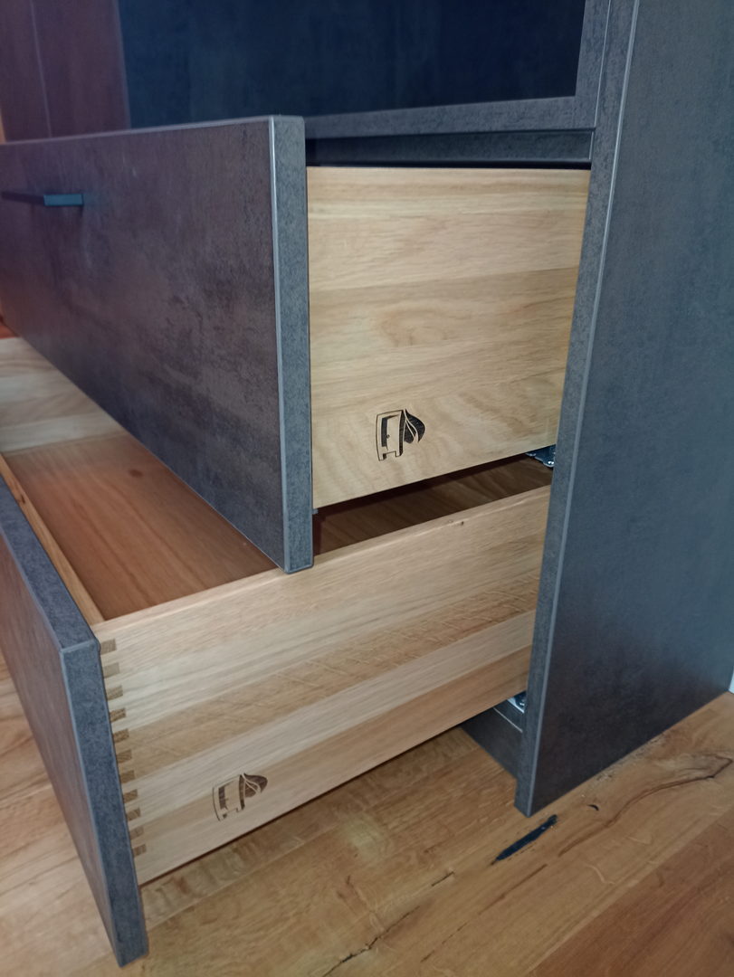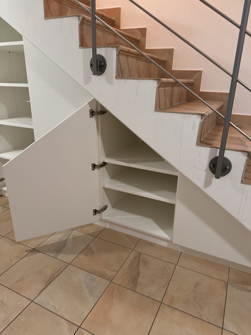 In der Ausführung stehen Ihnen zahlreiche Gestaltungs- und Materialvarianten zur Verfügung: grifflos oder klassisch, mit Drehtüren, Auszügen oder Schiebetüren, in Massivholz, furniert oder lackiert. Farbe, Oberfläche und Innenaufteilung planen wir individuell – passend zu Ihrem Wohnstil und Budget.