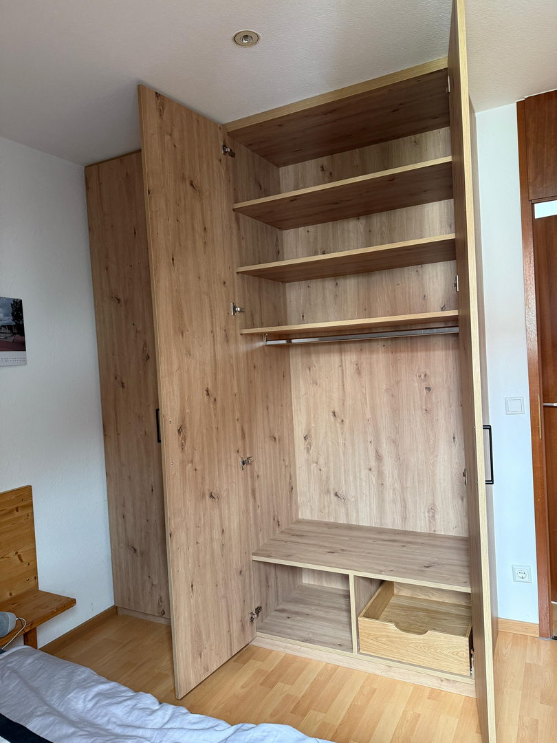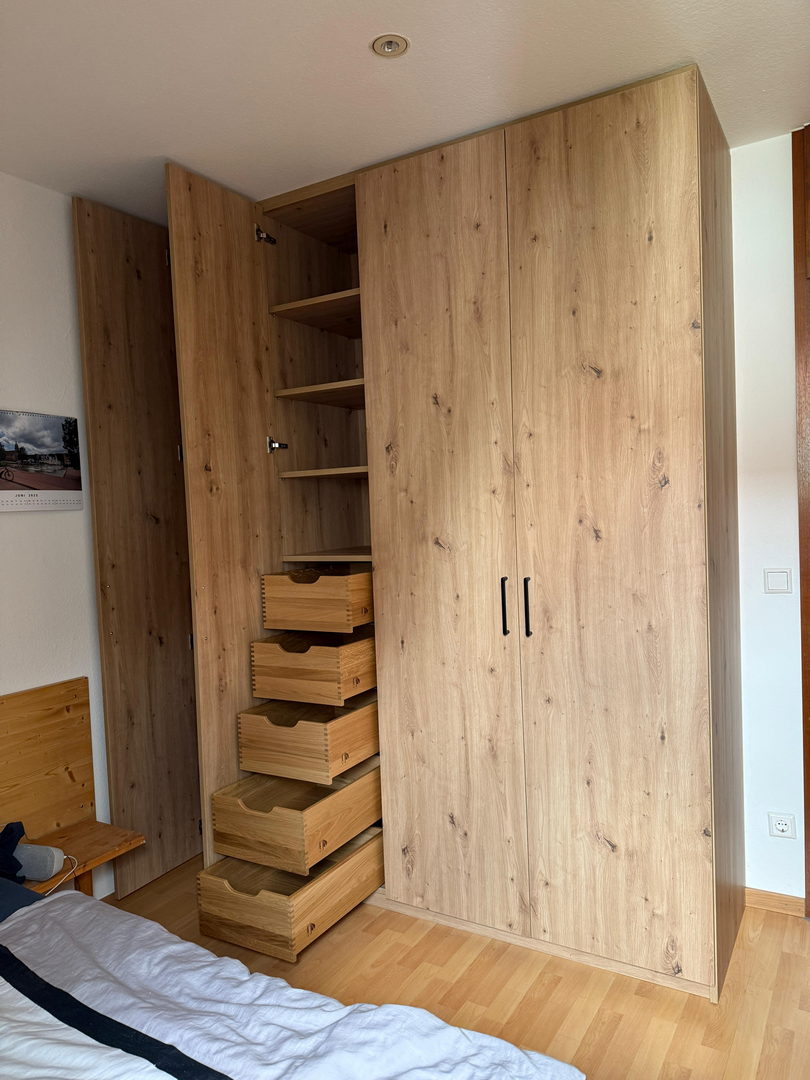 Ob Sie einen klassischen Kleiderschrank, einen großen Schrank mit viel Stauraum oder eine maßgeschneiderte Lösung für eine besondere Raumsituation suchen, wir entwickeln die passende Lösung für Sie. Gemeinsam gestalten wir einen Schrank, der nicht nur funktional ist, sondern auch optisch zu Ihrem Zuhause passt. Vereinbaren Sie einfach einen Termin mit uns.