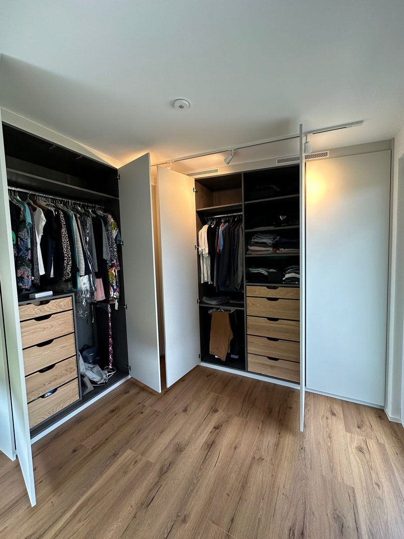 Egal, ob Sie einen klassischen Schrank mit Türen, einen modernen Schwebetürenschrank oder ein offenes Schranksystem bevorzugen: wir planen und fertigen Ihren Kleiderschrank individuell nach Ihren Wünschen und dem vorhandenen Platz.